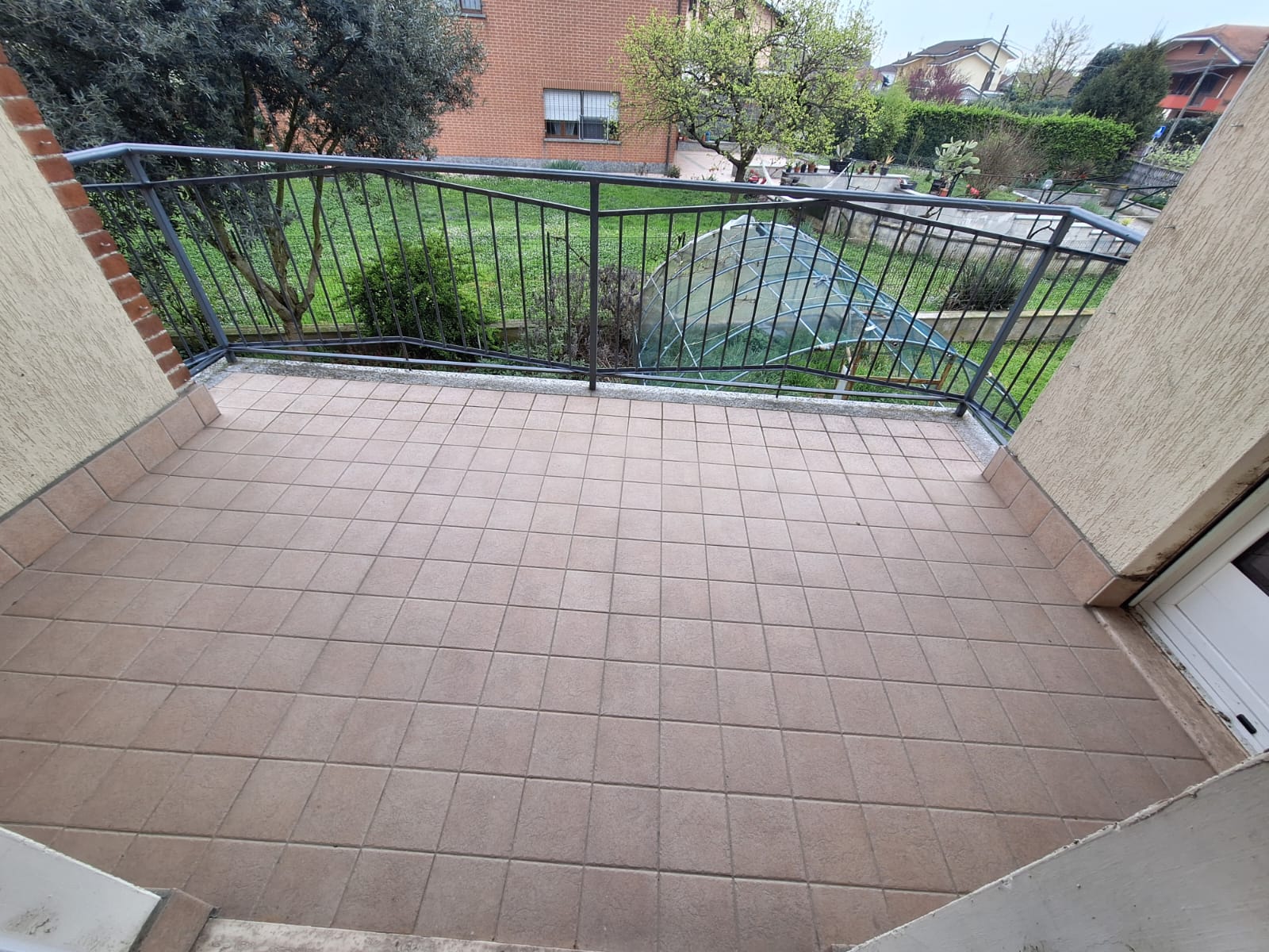Chieri – Pessione – Splendido appartamento completamente riattato con finiture moderne e materiali di qualità. L’immobile offre un ambiente luminoso e accogliente. Uno dei punti di forza di questa proprietà é la sua posizione strategica, a pochi passi dalla Stazione, davanti alla Martini e Rossi e dalla pista ciclabile che in piena sicurezza conduce a Chieri e al centro commerciale “Il Gialdo”; la ristrutturazione é stata totale, sia impiantistica elettrica idraulica che serramenti interni ed esterni. L’alloggio é posto al piano primo composto di: ingresso living su soggiorno ampio e luminoso, cucina abitabile, due camere matrimoniali, bagno con doccia, lavanderia, due ampi terrazzi coperti vivibili esposti a sud con affaccio sul giardino e sull’orto esclusivo.