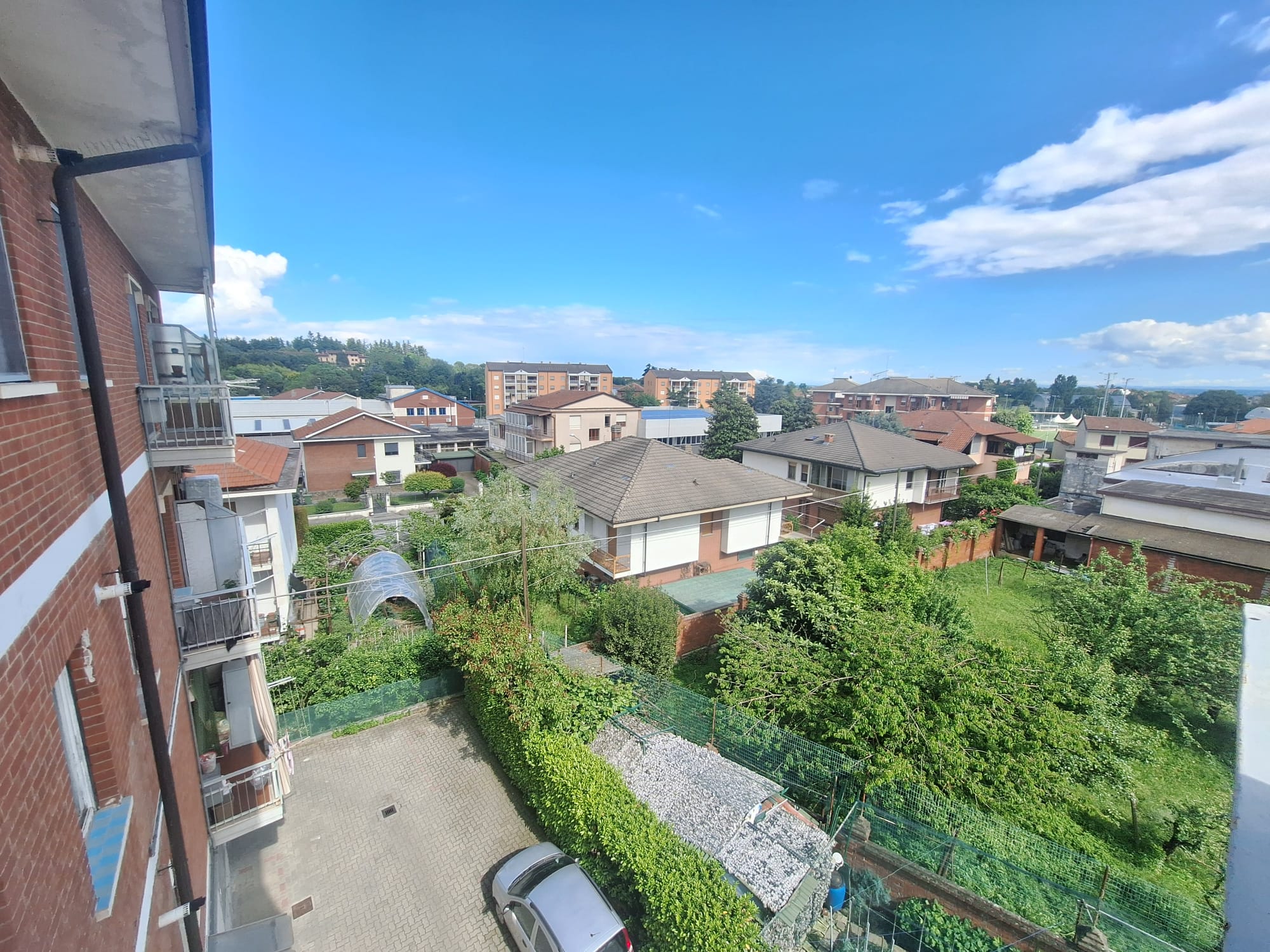 In zona comoda ai servizi ai mezzi e a tutti i negozi, si vende in palazzina con parcheggio condominiale appartamento piano alto molto luminoso e panoramico, posto al terzo piano (4. f. t. ) senza ascensore, composto di: ingresso, tinello con cucinino e uscita su primo balcone, due camere matrimoniali, bagno e ripostiglio. Secondo balcone. L’appartamento risulta abitabile seppur con qualche lavoro di ristrutturazione da affrontare. Il riscaldamento é autonomo. Le spese di condominio sono contenute. L’alloggio é già libero da persone. Ottimo anche da investimento. Orto privato. Box auto ad Euro 10.000.